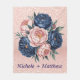 Navy Blue and Rose Gold Floral Fleece Blanket
