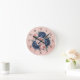 Navy Blue and Rose Gold Floral Round Clock