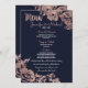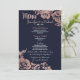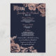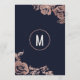 Elegant, chic, and simple modern faux printed rose gold flowers and typography on fashionable navy blue background, wedding reception menu cards. This classic and sophisticated design is perfect for the classy, stylish, and trendy wedding reception. Personalise with your own menu on the front, along with your names and dates. Then customise the back with your monogram initial. All photo print design.