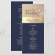 Simple, elegant, modern, navy blue and rose gold wedding program, with sophisticated floral lace.