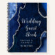 This elegant and glamourous wedding guest book features a navy blue agate marble background with faux silver glitter accents. The text combines handwritten script and modern sans serif fonts for a classy and sophisticated look. This will be perfect for autumn fall and winter weddings.
