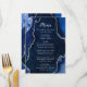 Display your meal selections in style with this elegant wedding menu featuring a navy blue agate marble design accented with silver details. The geode-inspired background creates a sophisticated look, perfect for fall and winter weddings, formal celebrations, or evening events. Designed to coordinate with your wedding stationery suite, this menu is ideal for presenting courses clearly while adding a luxurious touch to your table setting. The clean typography ensures readability while complementing the agate texture. Easily personalize all text to suit your menu and event details, making it a beautiful choice not only for weddings but also for engagement parties, anniversaries, and other formal occasions.