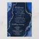 This elegant and glamourous wedding program features a navy blue agate marble background with faux silver glitter accents. The text combines handwritten script and modern sans serif fonts for a classy and sophisticated look. This will be perfect for autumn fall and winter weddings.