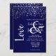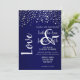 Wedding Invitation. Featuring a modern wedding styled invitation in a dark navy blue background with silver confetti dots and the word love in bold print. ⭐This Product is 100% Customisable. Graphics and / or text can be added, deleted, moved, resized, changed around, rotated, etc... 99% of my designs in my store are done in layers. This makes it easy for you to resize and move the graphics and text around so that it will fit each product perfectly. 📌 (Please be sure to resize, change, add, delete or move any graphics or text if needed before ordering) You can also "TRANSFER DESIGN" on other Zazzle products and adjust the design to fit most of Zazzle items. (click on the transfer area below) Some of the text graphics have ready to fill in the box(es) or you can Click on the "CUSTOMIZE" button to add, move, delete, resize, background colour or change any of the font or graphics. The design is made with high resolution vector and/or digital graphics for a professional print. 📌NOTE: (THIS IS A PRINT. All Zazzle product designs are "prints" unless otherwise stated under "About This Product" area) The design will be printed EXACTLY like you see it on the screen and on the product...so please make sure when you do your changes on the resizing of any of the graphics or text that it fits in the areas correctly and that your spelling and wording is how you like it to be in size, colour and font. If you have any questions about the "DESIGN ONLY" or need help please contact me through my store link: https://www.zazzle.com/store/LetsUDesignIt (Copy and Paste) I'll be happy to help. ⭐ ALL OTHER QUESTIONS SUCH AS (shipping, refund, the printing being incorrect, the product itself, etc...) please contact Zazzle or the Maker ⭐DIRECTLY⭐. Thank you for the support and stopping by my store - LetsUDesignIt. ⭐⭐⭐ ZAZZLE promises 100% satisfaction.