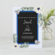 Navy Blue and Silver Elegant Heart Floral Wedding Invitation