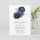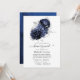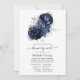 Navy blue and silver long distance floral baby or bridal shower by mail invitation with elegant typography customisable to your event specifics.