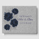 Navy Blue and Silver Glitter Leaves Wedding Guest Book
