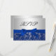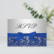 Formal navy blue lace and silver wedding RSVP card. Easily personalise for your wedding day. Designs are flat printed illustrations/graphics - NOT ACTUAL SILVER, BOW OR LACE.