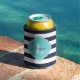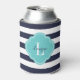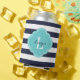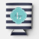 Navy Blue and Turquoise Preppy Stripes Monogram Can Cooler
