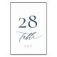 Navy Blue and White Calligraphy Modern Wedding Table Number