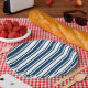 Navy blue and white candy stripes paper plate