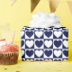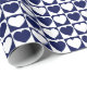 A wrapping paper built with a navy blue and white chequered pattern with hearts in large size. Customise the white background colour among several options.