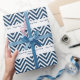 Trendy chevron paper in preppy navy and white with white stripe and space for your text, name or initial monogram. You can customise it or delete the text and leave the zigzag pattern as is.