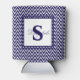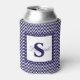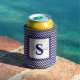 Modern navy blue and white chevron striped monogrammed can cooler.