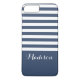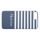 Navy Blue and White Classic Stripes Monogram Case-Mate iPhone Case
