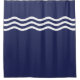 Navy Blue and White Coastal Wave Pattern Shower Curtain