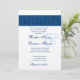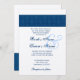 This navy blue and silver design makes an elegant wedding invitation. The damask on the back is in a subtle two tone, which adds a nice touch. You can experiment with different paper types to get just the look you want. This invitation is featured on a premium silver metallic paper which gives your invitation an extra special shimmer and glow.
