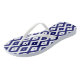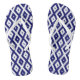Navy blue and white diamond pattern flip flops