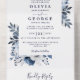 Navy Blue And White Elegant Floral Wedding All In One Invitation