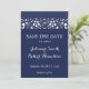 This elegant lace save the date is from my Lace Love | Rustic Monogram Wedding Suite, features a simple navy blue background with a white vintage lace, personalised with your own monogram. Perfect for many different wedding styles, including a rustic wedding, vintage, nautical wedding or winter wedding. This save the date looks great in a signature matte paper, if you want something more traditional consider using Laid, Linen or Columned. For an artsy effect, use the Artisan Felt White or Felt Ecru. If you want to enhance your save the date with a shimmer finish, use the Pearl Shimmer or the Champagne Shimmer. You can see all the papers here This is a flat printed card, if you need a folded version, please contact with me. Clicking in the "Customise it" button you can go to the design tool, where you can change the font, colors, text position and much more. I do offer free a customisation service, if you have any questions or special requests, please feel free to contact me at margherita@bluebirdinvites.com. Matching US postage and lined envelopes are available for US customers