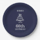 Navy Blue and White Mens Birthday Party Paper Plate