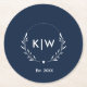 Navy Blue and White | Modern Initials Monogram Round Paper Coaster