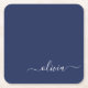 Navy Blue and White Modern Monogram Square Paper Coaster