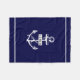 Navy blue and white nautical anchor and lines fleece blanket