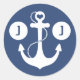 Navy Blue and White Nautical Monogram Classic Round Sticker