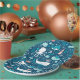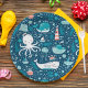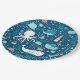 Add a custom nautical touch to your little kid's birthday party with this adorable ocean set of paper plates. Each plate has a pattern of a whale, octopus, sailboat, steam boat, jellyfish, submarine, and lighthouse on a navy blue background. Plate may be personalised with the first name of your kid.