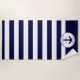 Navy blue and white nautical ship anchor beach towel with a family name to personalise the template.