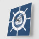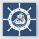 Navy Blue And White Nautical Wheel Square Wall Clock