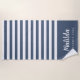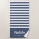 navy blue and white personalised summer beach towel