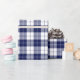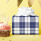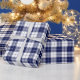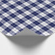 A wrapping paper designed with a navy blue and white plaid pattern. Customise the white background among other options.