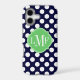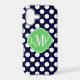 Socialite Designs. Our elegant polka-dot pattern in dark blue and white mobile phone case has a banner for your monogram, initials or name. Just replace our existing template text with your own.