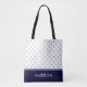 Navy Blue and White Polka Dots with Monogram Tote Bag