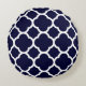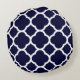 Navy Blue and White Quatrefoil Pattern Round Cushion