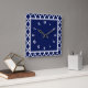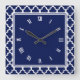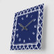 Navy Blue and White Quatrefoil Pattern Square Wall Clock