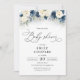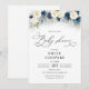 Navy Blue and White Roses Baby Shower Invitation