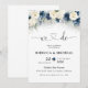 Navy Blue and White Roses Wedding Ceremony Invitation