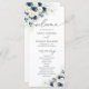 Navy Blue and White Roses Wedding Program. This stylish & elegant wedding shower features gorgeous hand-painted watercolor Navy Blue and White Roses. Find matching items in the Navy Blue and White Rose Collection.