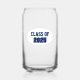 Trendy can glass for the school grad that features school colours of navy blue and white, with class year printed in bold, navy blue lettering on a white oval background. Great for graduation and class reunion parties. Edit class year with your own as desired.