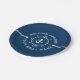 Elegant navy blue and white steering wheel with a rope and boat anchor, customisable white text. White dots and stripes design elements embellishments. The design comes in reversed colours.