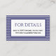 The classic navy blue and white striped enclosure card enclosed to the wedding invitation conveys the details connected to the wedding planning and celebrations. It is part of the classic striped wedding stationery suite. Select a background colour and change the blue shade to match the details card with your wedding colours. For customisation and design enquiries, please contact https://kbmd3signs.com/contact/.