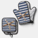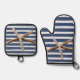 Navy Blue and White Stripes Starfish Oven Mitt & Pot Holder Set