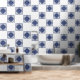 Navy Blue and White Watercolor Mediterranean Tile Wallpaper