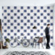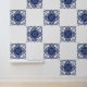 Easy to install peel and stick wallpaper with navy blue and white watercolor Mediterranean tile pattern inspired by Portuguese Azulejo, featuring an original illustration of elegant nature motifs. With its modern yet classic design with intricate details, this wallpaper is perfect for bathroom, kitchen, living or dining room wall. Bring timeless sophistication to your home interior design with this stunning tile patterned wallpaper, effortlessly blending tradition with a contemporary flair, creating a stylish and inviting living space.
