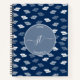 Navy Blue Antique Leaves Pattern Monogram Notebook