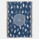 Navy Blue Antique Leaves Pattern Monogram Throw Blanket