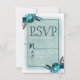 Navy Blue & Aqua Watercolor Floral Wedding RSVP Card